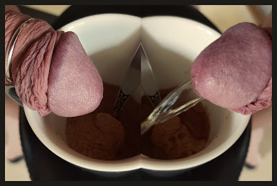 Buiten is het weer er naar. Masto wil weer eens genieten van een heerlijke eigengemaakte mok chocolade'melk'. Ditmaal zonder melk maar met Masto's eigengemaakte warme pis, aangevuld met kokend water. De verhouding pis/kokend water hangt af van de sterkte van de pis. Masto kan het iedereen aanbevelen om deze erotische drank eens te maken. Laat je verrassen, want het is écht lekker......!